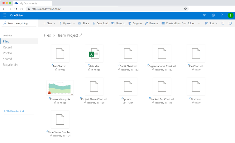 Connect Vizzlo to OneDrive and have your visualizations available across all of your devices.